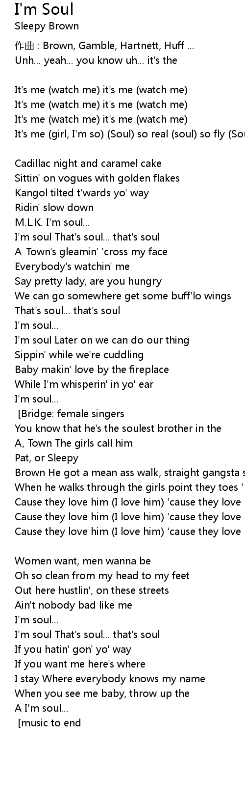 | I' m soul That' s soul... that' s soul Chorus x2 Bridge: female singers | |