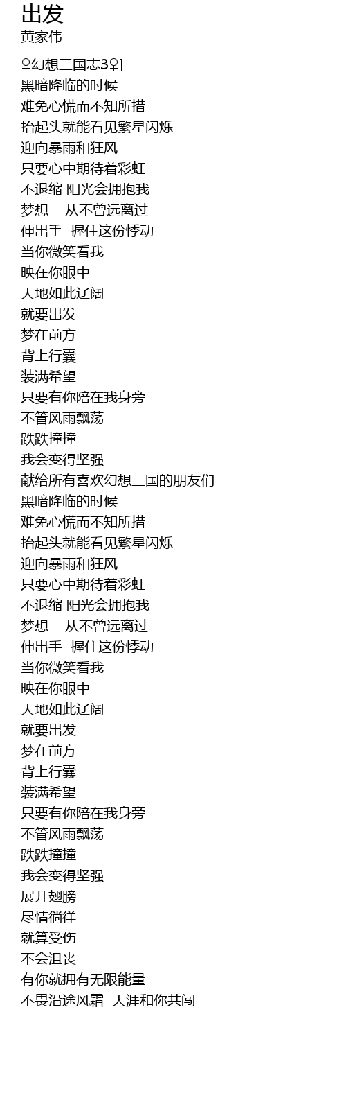 | [01:20.50] | 献给所有喜欢幻想三国的朋友们 |