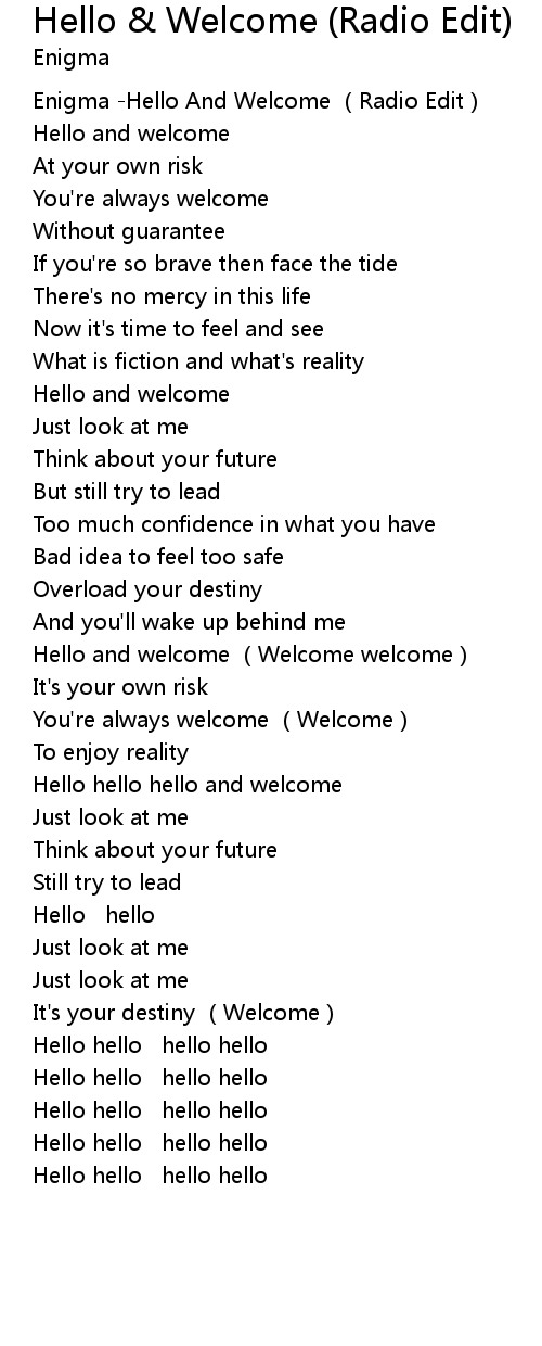 | [00:00.371] | Enigma Hello And Welcome Radio Edit |