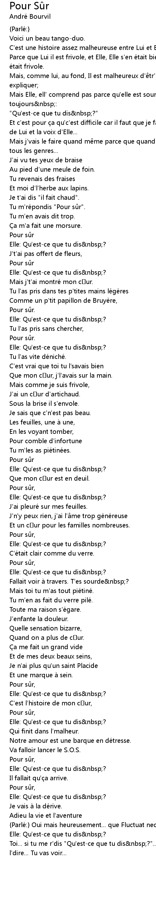 | Et c'est pour ça qu'c'est difficile car il faut que je fasse à la fois la voix de Lui et la voix d'Elle... | |
