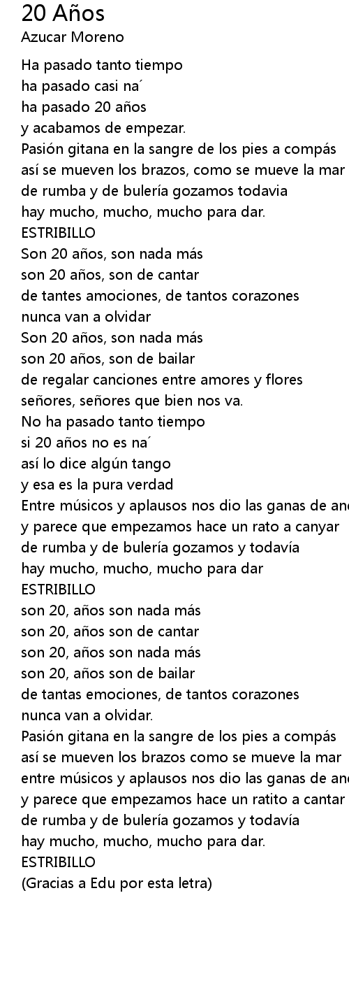 | son 20 años, son de cantar | |