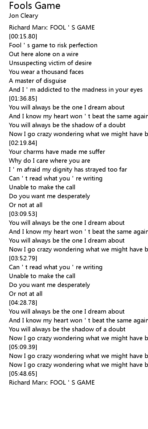 | [00:08.36] | Richard Marx: FOOL S GAME |