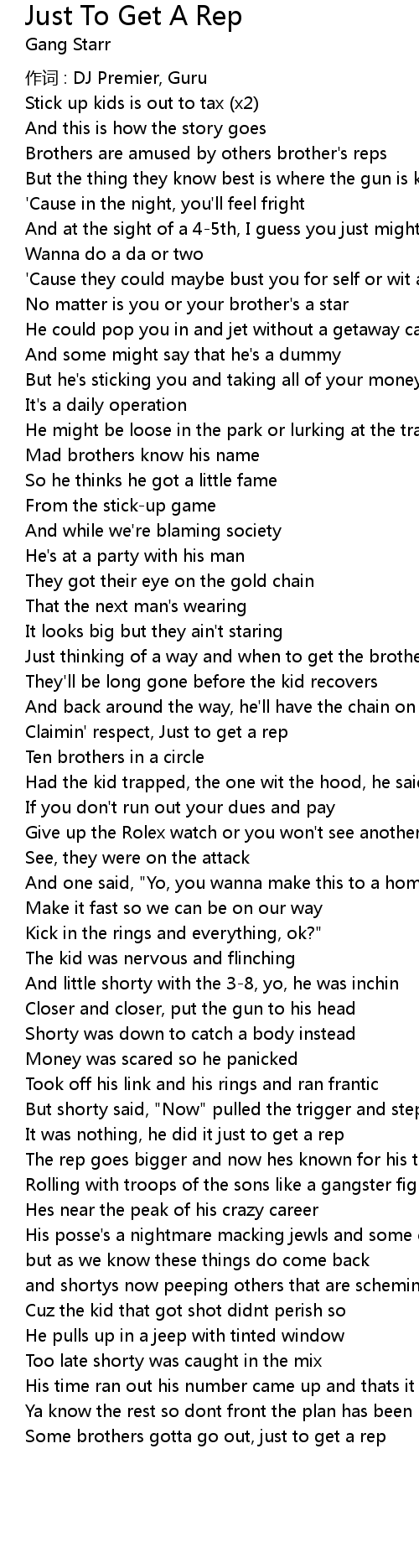 | Song | Just To Get A Rep |