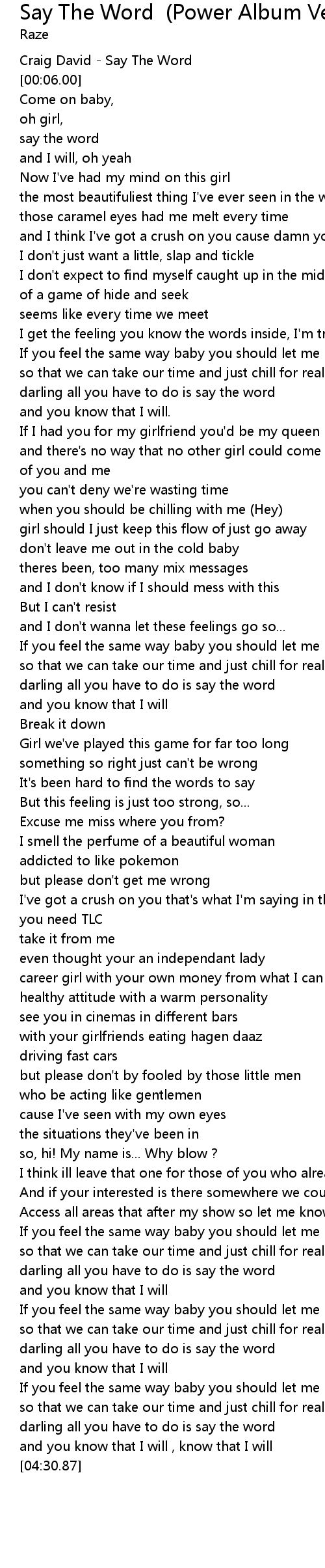 | [00:00.00] | Craig David - Say The Word |