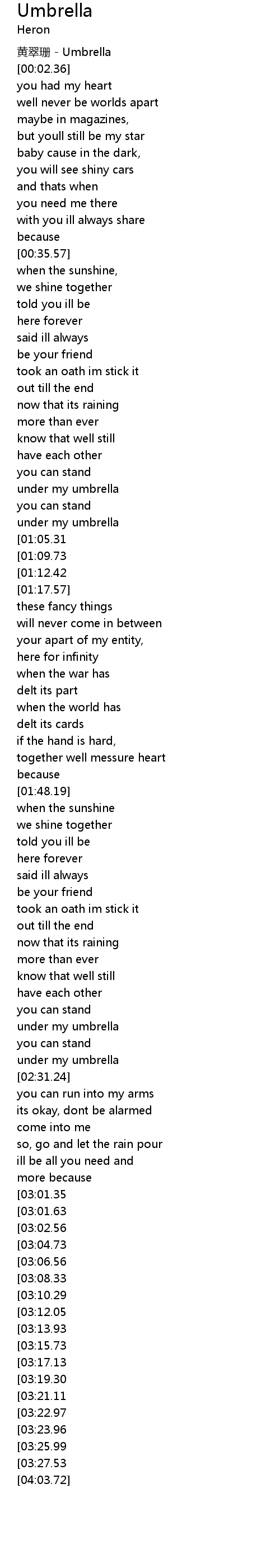 | [03:53.08][03:23.96] | under my umbrella |