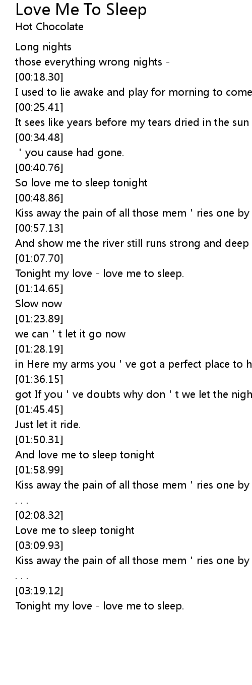 | [01:08.38] | Tonight my love love me to sleep. |