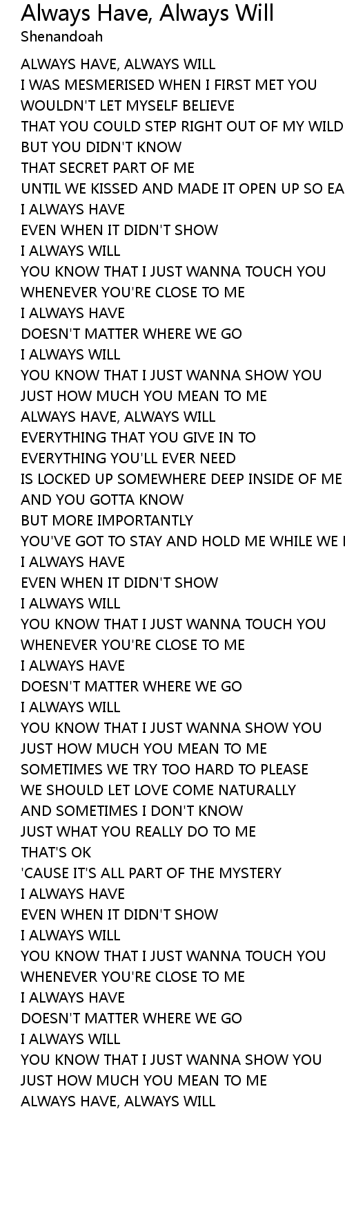 [00:12] ALWAYS HAVE, ALWAYS WILL