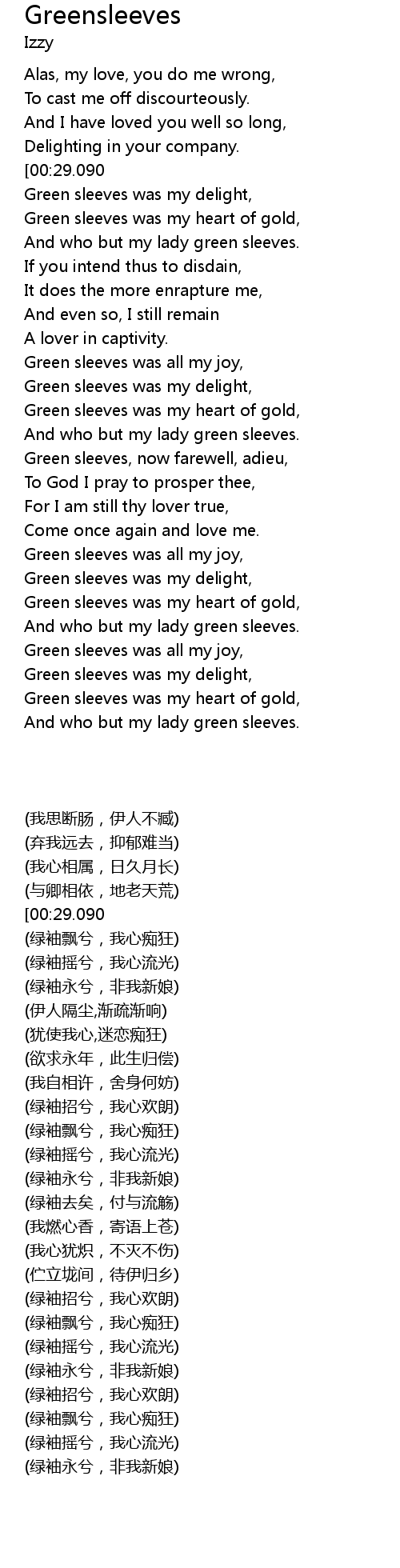 | [00:33.950] | Green sleeves was my delight, |