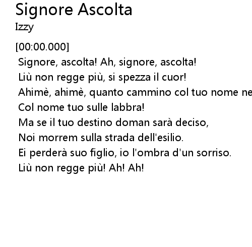 | [01:36.263] | Signore, ascolta! Ah, signore, ascolta! |