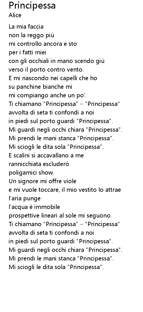 | Mi prendi le mani stanca "Principessa". | |