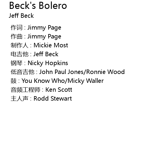 | [00:00.000] | 电吉他 : Jeff Beck |