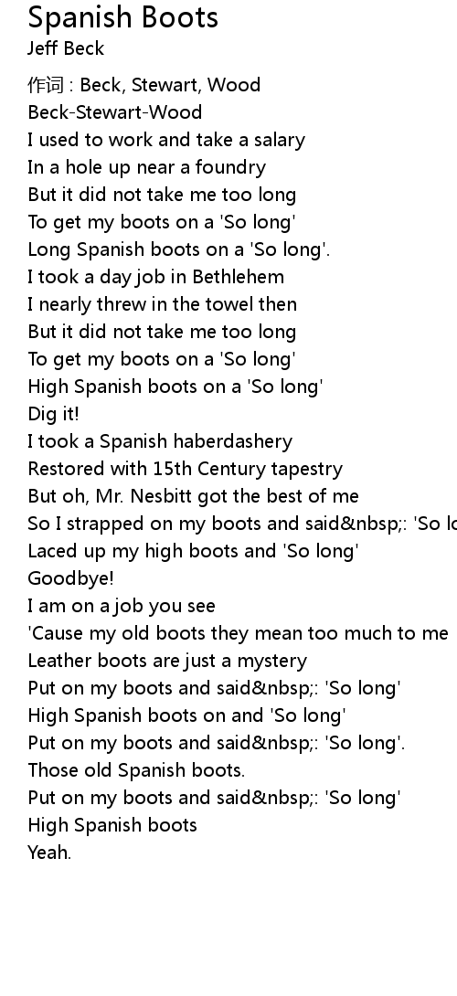 | Long Spanish boots on a ' So long'. | |