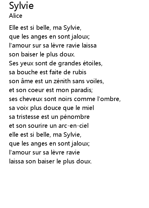 | elle est si belle, ma Sylvie, | |