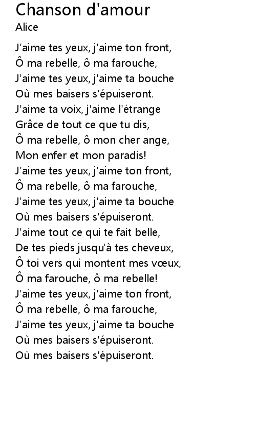| Song | Chanson d'amour |