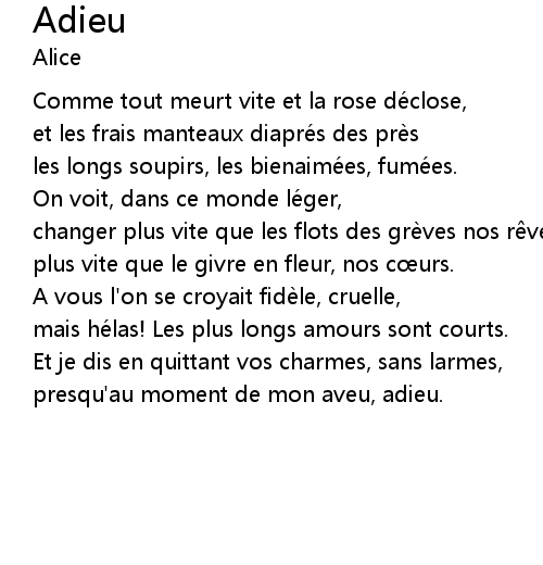 | presqu' au moment de mon aveu, adieu. |