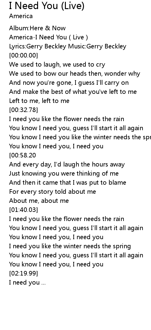 | [01:46.46] | You know I need you, guess I'll start it all again |