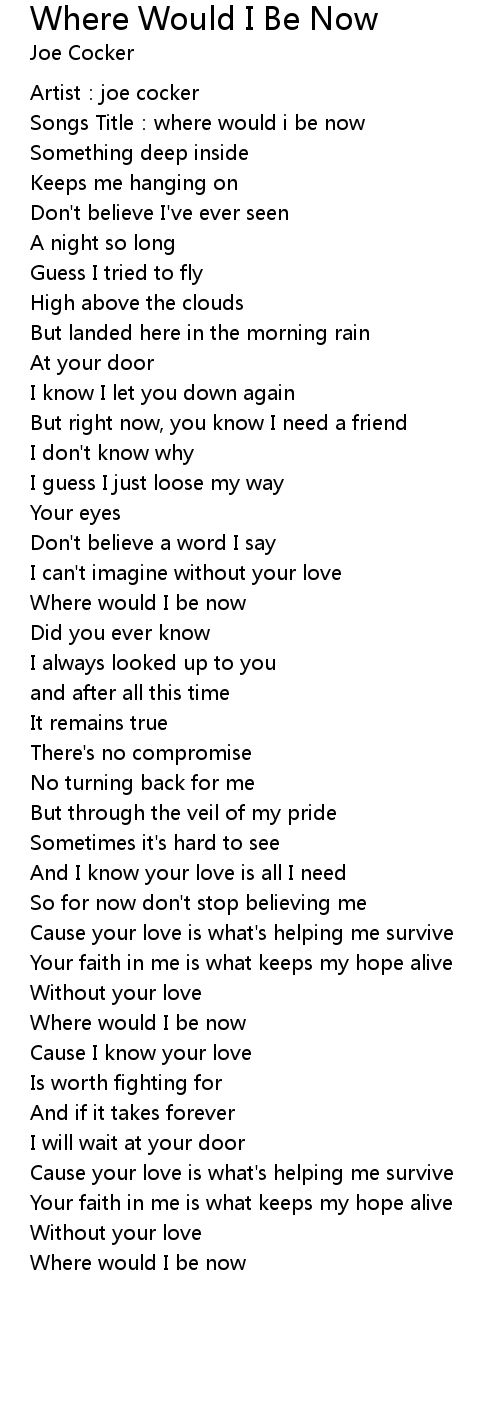 | Song | Where Would I Be Now |