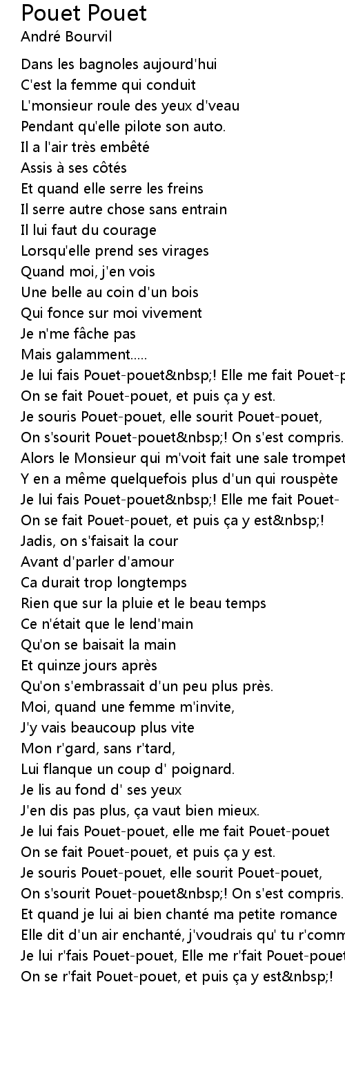 | Je lui r'fais Pouet-pouet, Elle me r'fait Pouet-pouet, | |