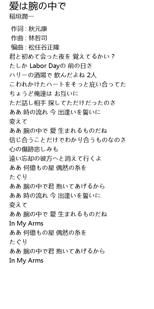 | [02:04.226] | ああ 腕の中で 愛 生まれるものだね |