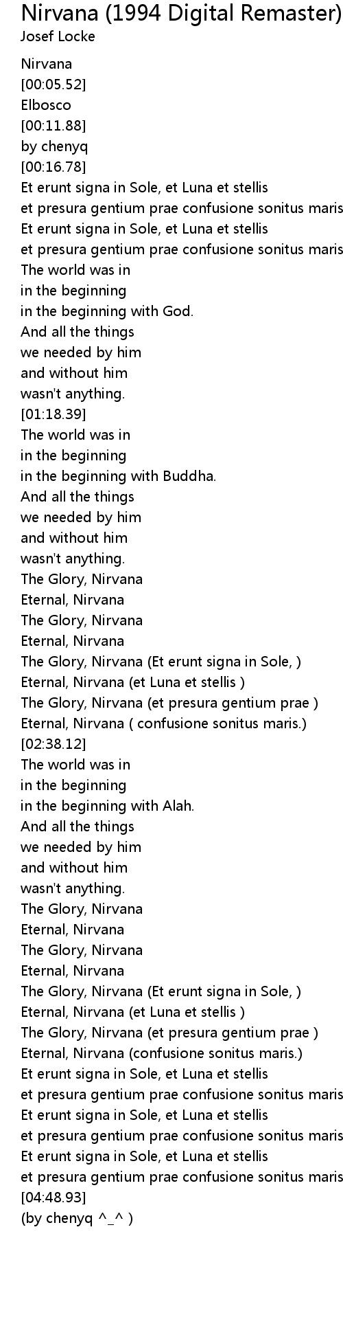 | [03:49.65] | Eternal, Nirvana confusione sonitus maris. |