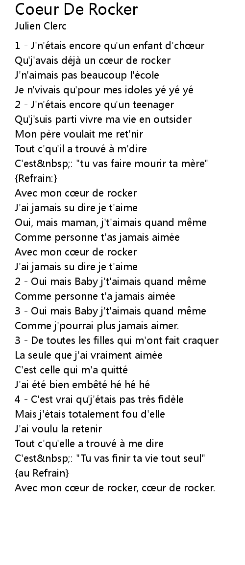 | Qu' j' avais dé jà un c ur de rocker | |