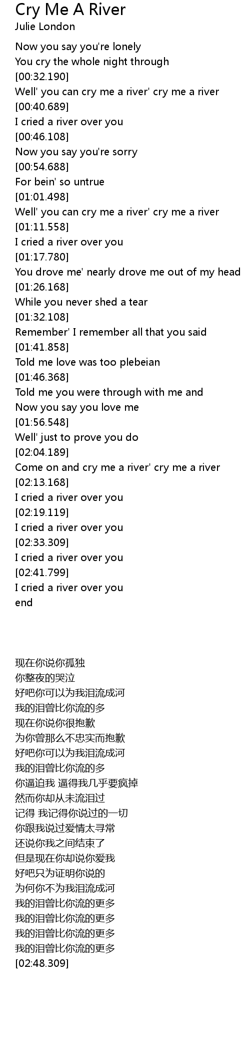 | [01:03.498] | Well' you can cry me a river' cry me a river |