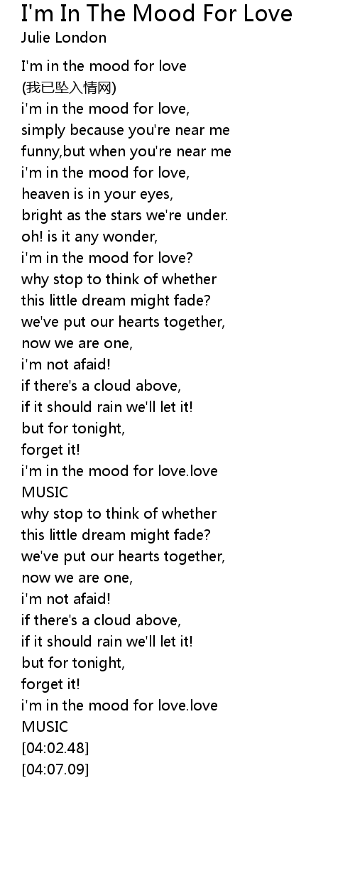 | [00:40.48] | i' m in the mood for love, |