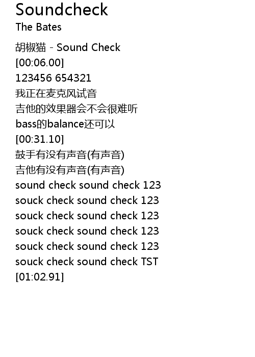 | [00:02.00] | 胡椒猫 - Sound Check |