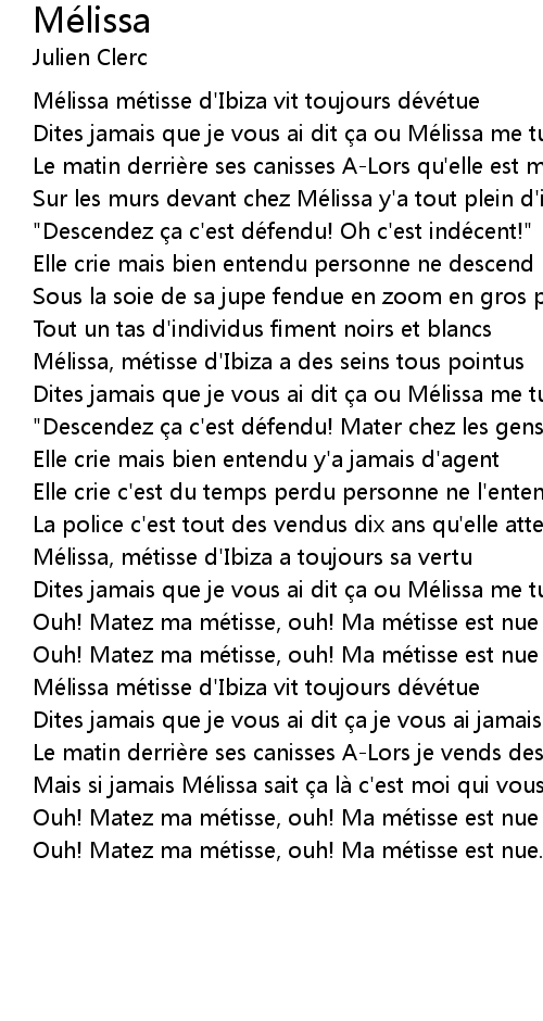 | Mais si jamais Mélissa sait ça là c'est moi qui vous tue | |