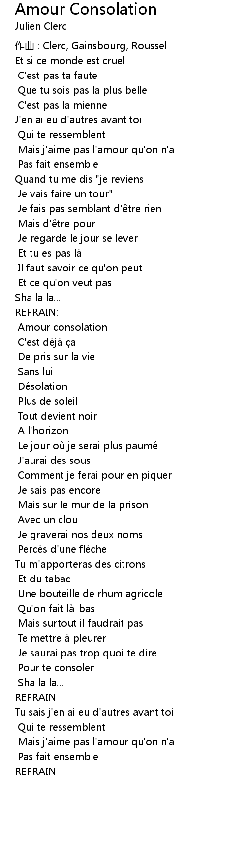 | Song | Amour Consolation |