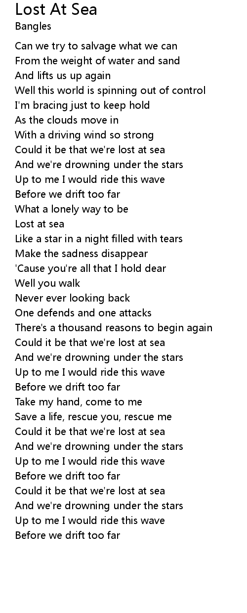 Could it be that we're lost at sea |