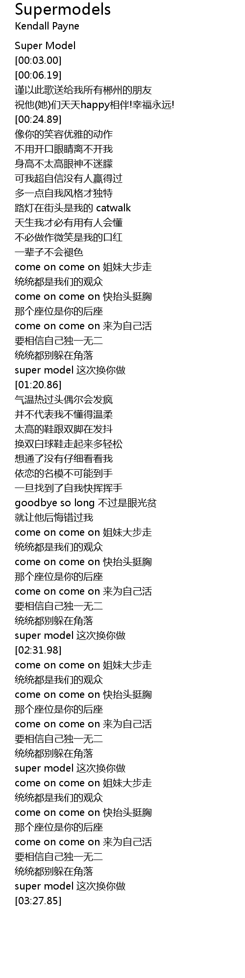 | [03:25.30] | super model zhe ci huan ni zuo |