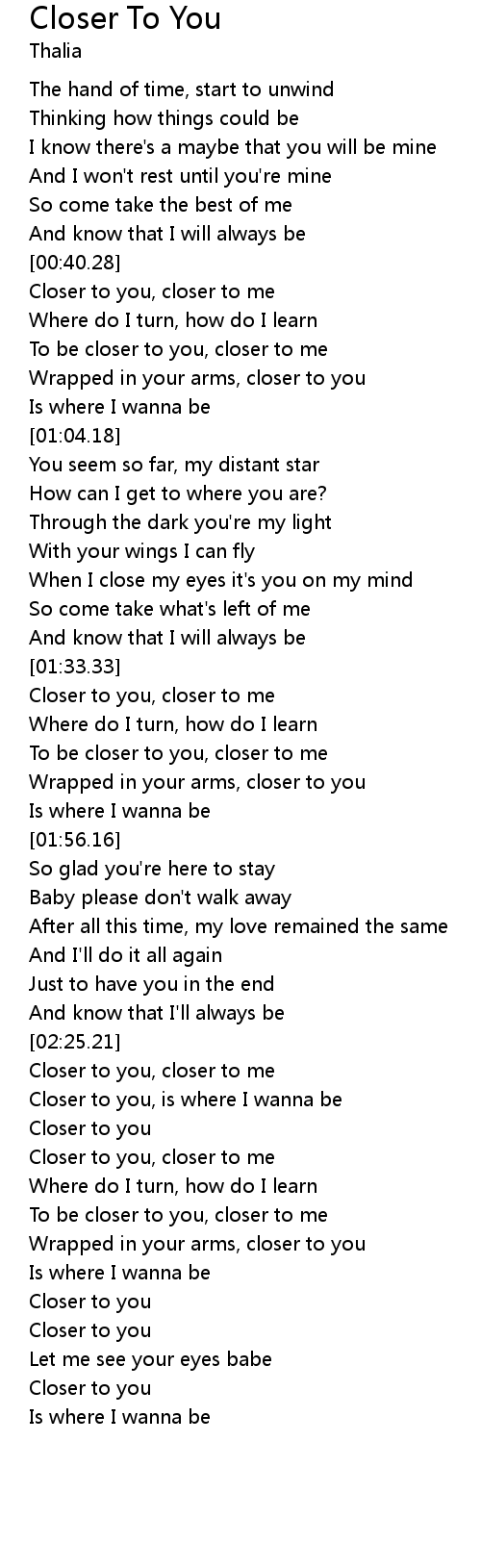 | [01:49.93] | Wrapped in your arms, closer to you |