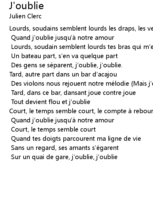 | Song | J'oublie |