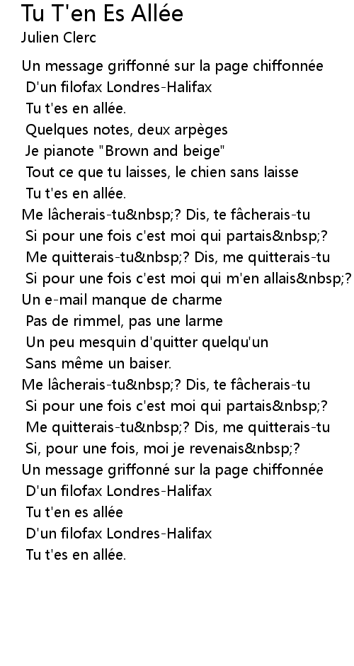 | Tu t' en es allé e | |