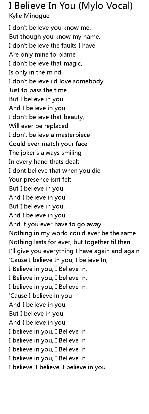 I believe in you, I Believe in. |
