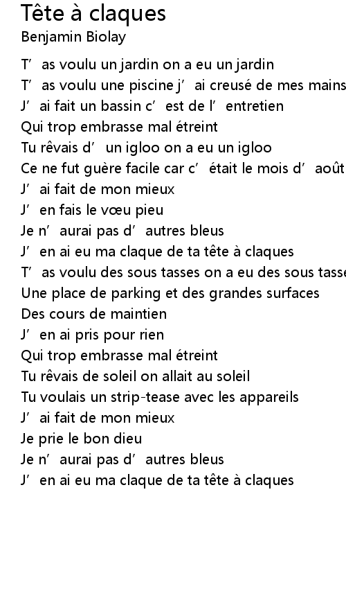 | J' en ai eu ma claque de ta t te a claques | |