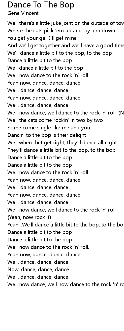 Yeah...We'll dance a little bit to the bop, to the bop |
