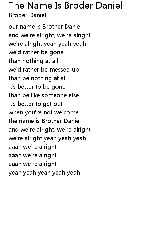 | Song | The Name Is Broder Daniel |
