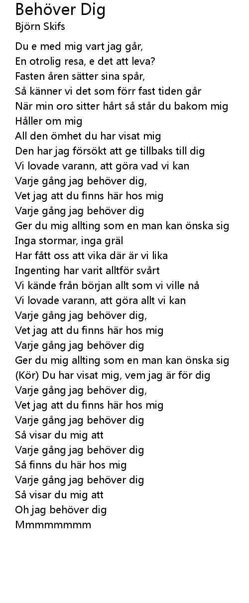 | Song | Behöver Dig |