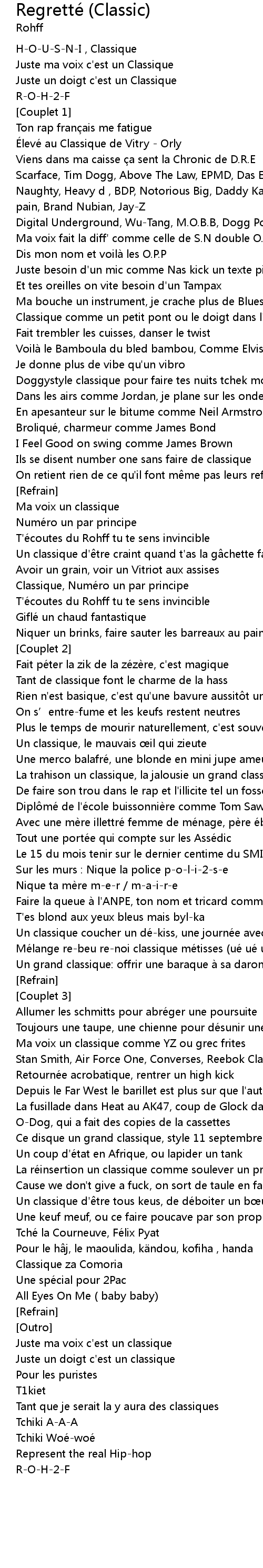 | Song | Regretté (Classic) |