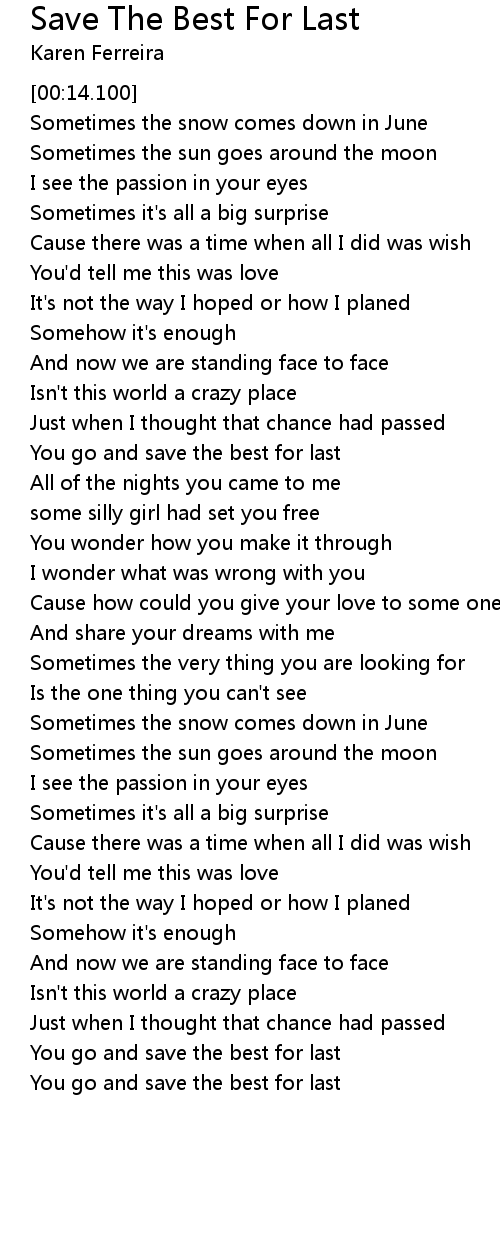 You go and save the best for last |