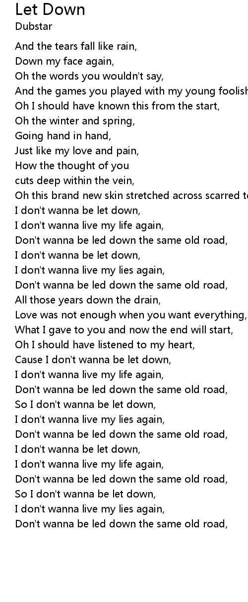 | [01:10.39] | I don't wanna be let down, |