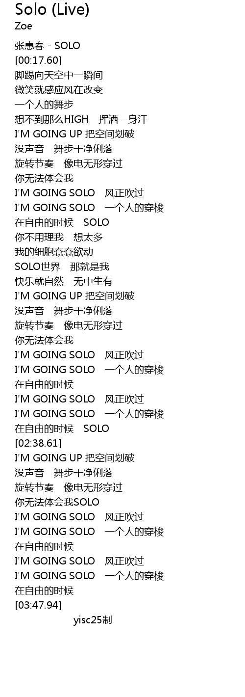 | [03:03.43] | 你无法体会我SOLO |