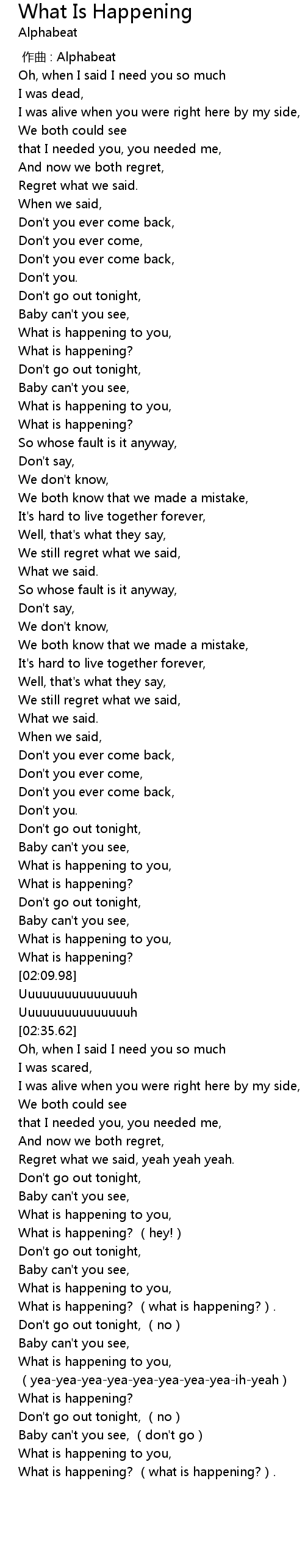 | [03:24.18] | What is happening to you, (yea-yea-yea-yea-yea-yea-yea-yea-ih-yeah) |