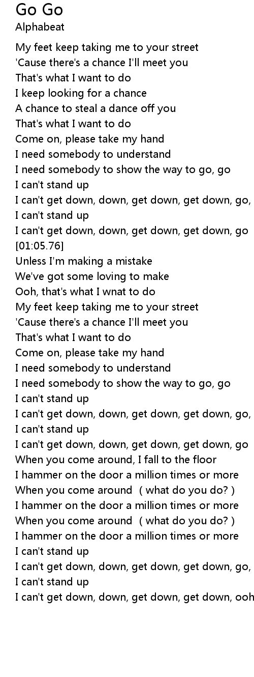 | [01:35.90] | I can't get down, down, get down, get down, go, go |