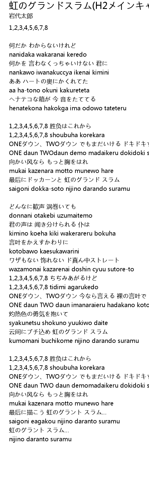 | Song | 虹のグランドスラム(H2メインキャラヴァージョン) |