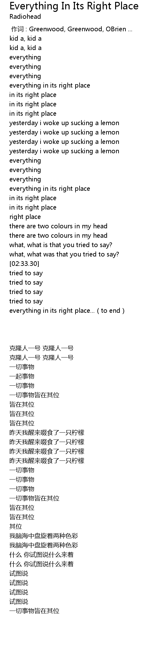 | [02:46.43] | everything in its right place...(to end) |