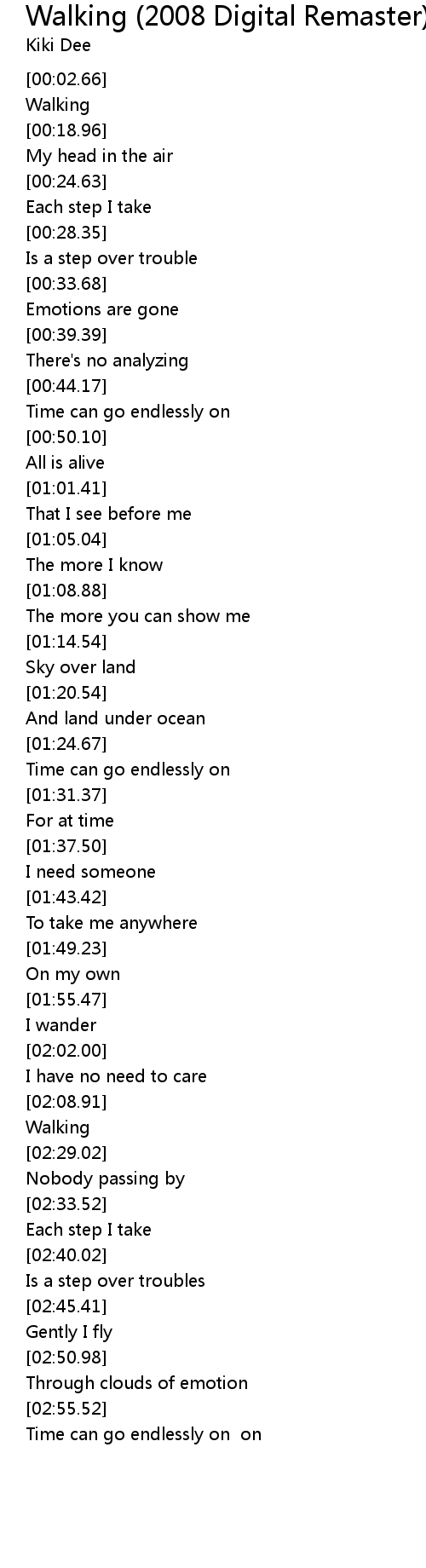 | [00:17.45] | Walking |