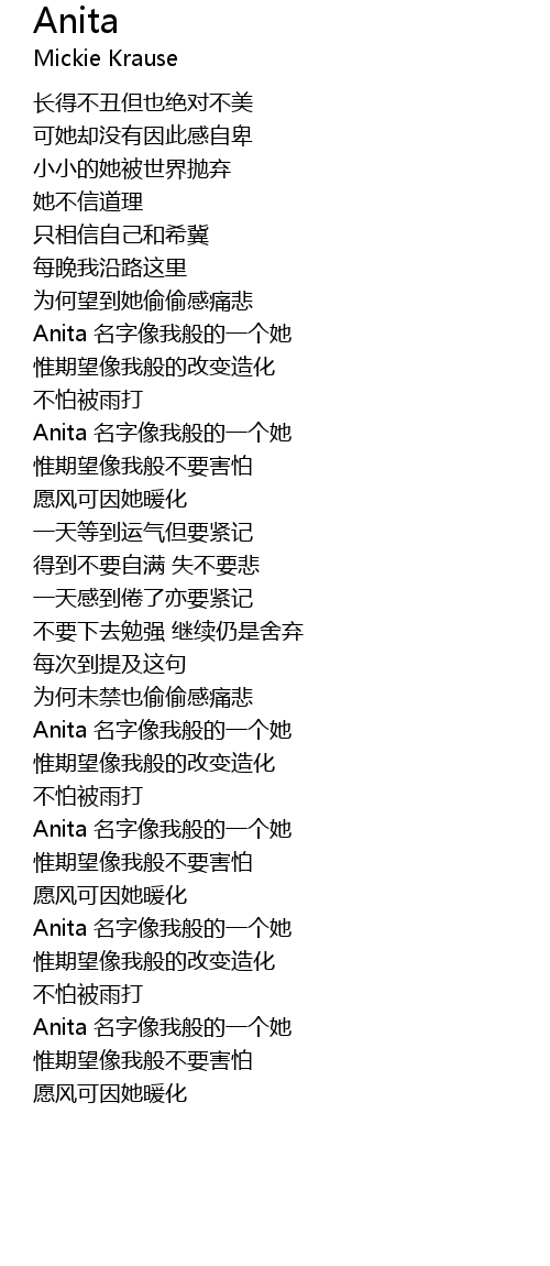 | [00:55.27] | Anita 名字像我般的一个她 |